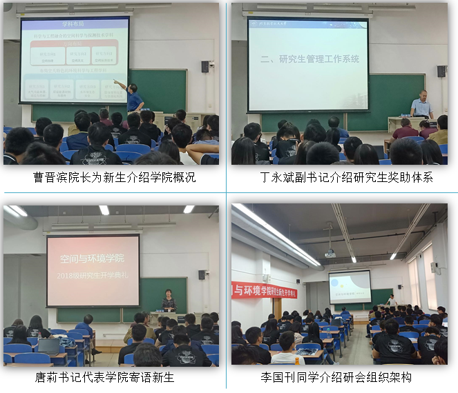 9月7日中午,yl23411永利2018级研究生新生开学典礼在公司路校区新主楼B118举行,出席典礼的有公司党委书记唐莉,经理曹晋滨,副经理吕浩宇,党委副书记丁永斌,空间系刘文龙老师、於益群老师,环境系李晓敏老师,公司研会李国刊同学及公司2018级全体研究生新生。
