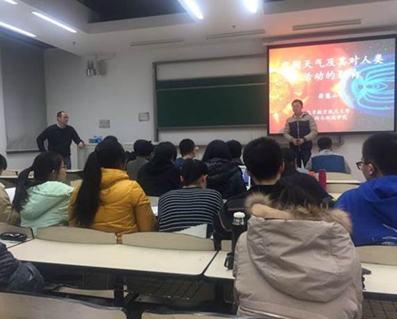 yl23411永利yl23411永利新闻电12月7日晚上七点半,公司的符慧山教授给大一同学带来了“空间天气及其对人类活动的影响”的教育讲座。这个神秘而又充满魅力的话题紧紧抓住了同学们的视线,同学们自始至终听得津津有味,收获颇丰。