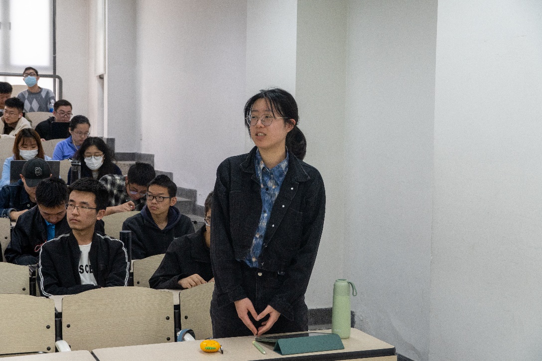 王之涣“白日依山尽,黄河入海流;欲穷千里目,更上一层楼”寥寥数语,把景色写得浩瀚壮阔,气魄雄浑,放眼宇宙之无限,寓寄哲理之深沉;李白“今人不见古时月,今月曾经照古人”二句备极重复、错综、回环之美,将明月常在,而人生短暂之意渲染得淋漓尽致;朱熹“问渠那得清如许?为有源头活水来”融诗情理趣为一体,一问一答巧妙揭示做学问要不断更新、积累新知识才能不断进步……在提问环节,同学们围绕哲理诗赏读方式、哲学与艺术的关系等踊跃发问,张宏韬结合自身的理解和感悟一一耐心解答。