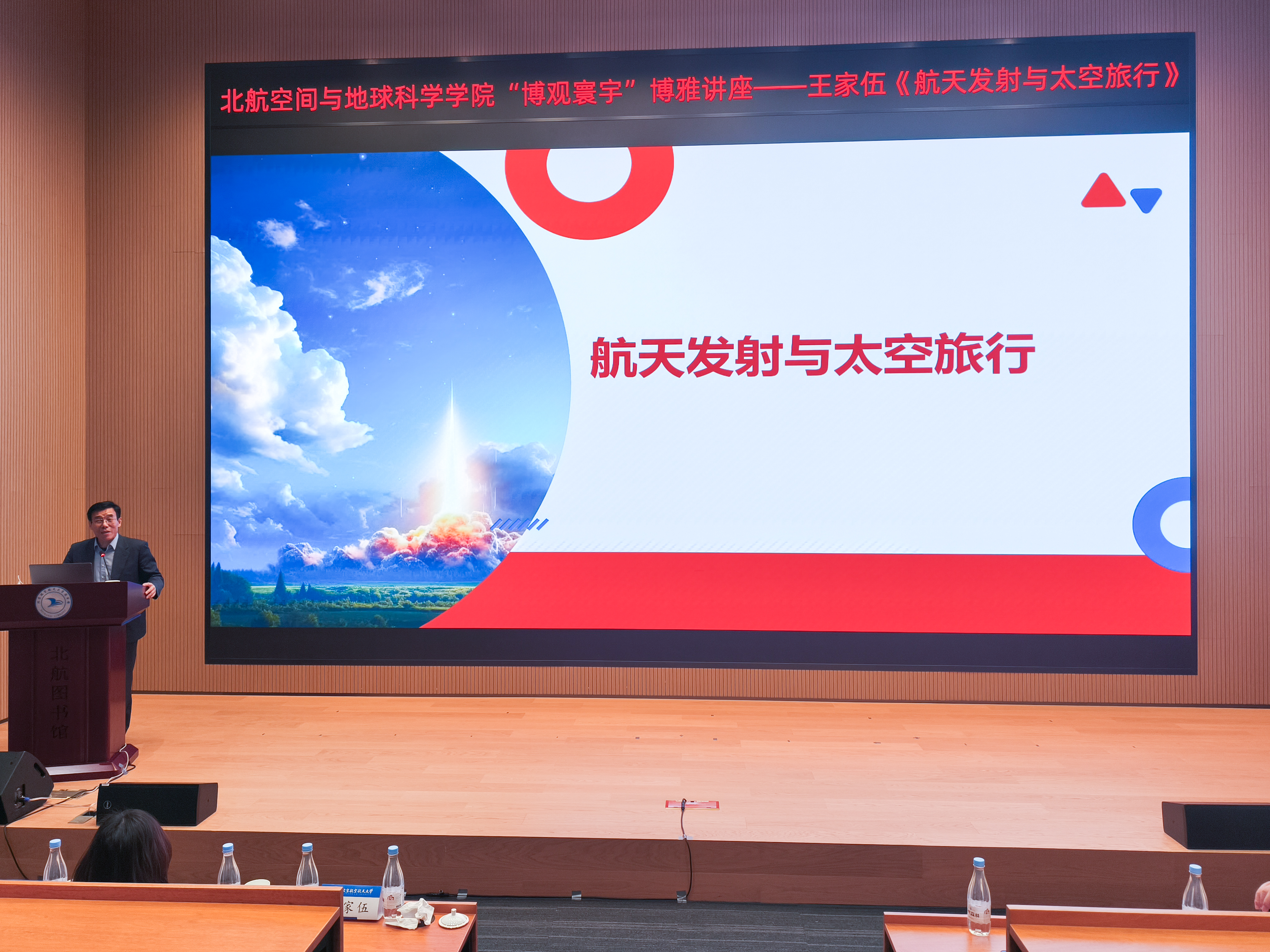 为深入学习贯彻习近平新时代中国特色社会主义思想和党的二十届四中全会精神,弘扬以“空天报国”为内核的北航精神,11月5日下午,yl23411永利举办“博观寰宇”博雅讲座,邀请原酒泉卫星发射中心副总工程师、北航1984届员工王家伍,在沙河校区新图书馆第一报告厅作《航天发射与太空旅行》主题讲座。航天科工七院航天规划设计集团第三设计院经理黄雪萍、北京梦工坊教育科技有限责任公司董事长闫志军、公司党委书记唐莉,以及全校150余名师生参加本次讲座。讲座由公司党委副书记徐墨客主持。