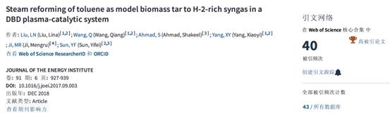 据ESI最新数据显示,公司孙轶斐教授作为通讯作者在《Journal of EnergyInstitute》上发表的题为《Steam Reforming of Toluene as Model BiomassTar to H2-rich Syngas in a DBD Plasma-Catalytic System》的论文,自2019年9月起入选ESI高被引论文,所属学科领域为工程学,北航为唯一通讯单位。