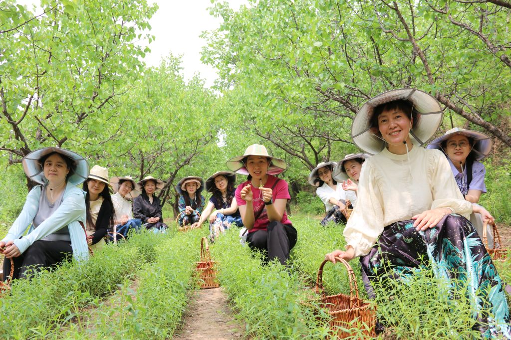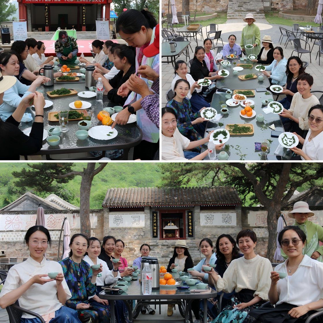 活动从公司老师们走进黄芩茶非遗工坊开始,北京灵之秀大村山茶种植专业合作社理事长张建民带领团队结合采茶小院的陈列,为大家介绍了古法制茶技艺。详细了解了开汤、冲泡、出汤等鉴茶步骤之后,老师们更加体会到小小杯中流转的不仅是茶叶,更是千年茶文化的积淀。在随后的登山采茶环节,张建民老师带领大家辨识黄芩、柴胡等中草药,科普茶文化与中医药的共生关系,老师们手持茶篮、头戴草帽,于簇簇黄芩间采下五月新绿的嫩芽儿,在实践中体悟茶文化的魅力。