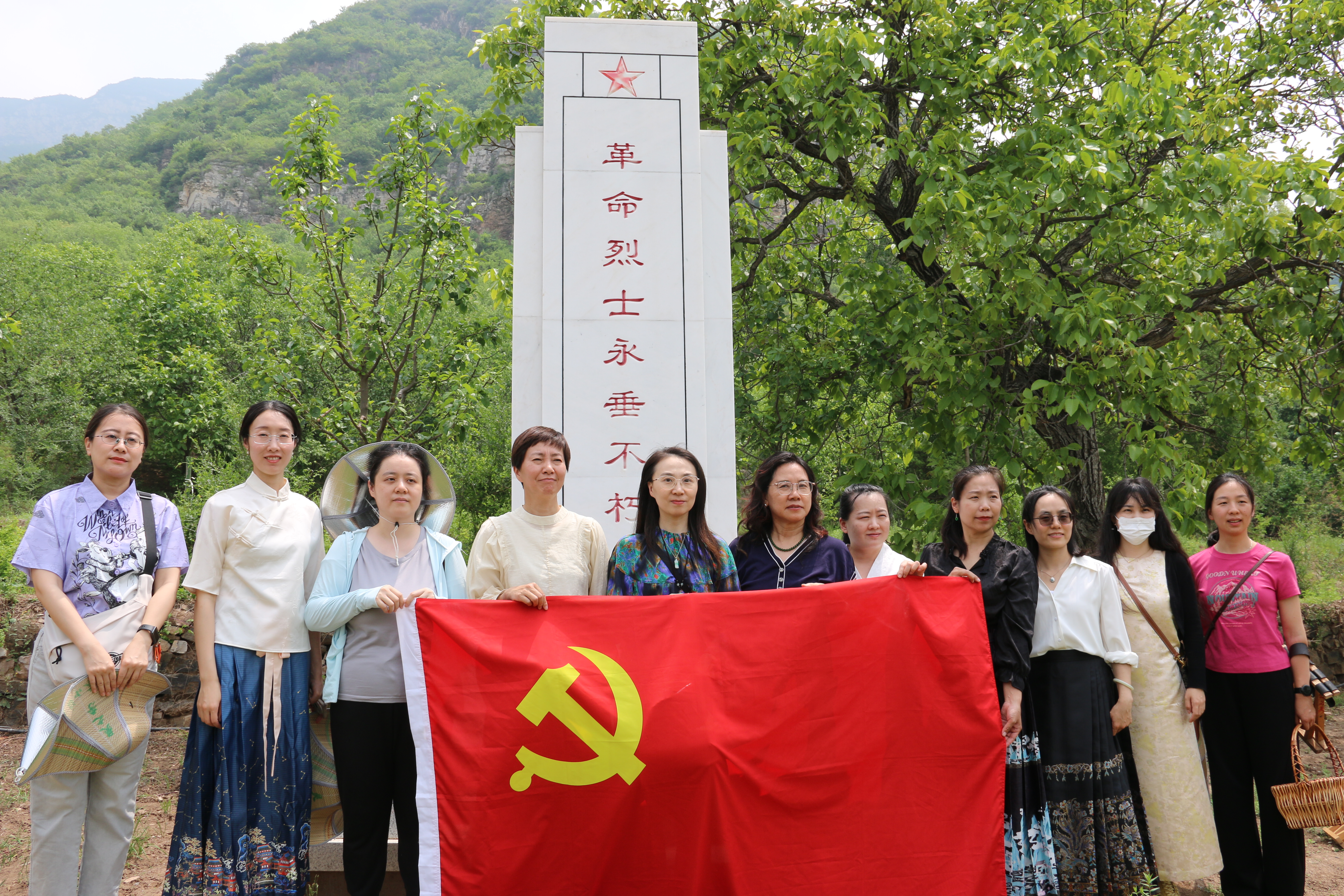 在通往茶园的路上,有一座烈士纪念碑庄严树立在乡间田陌中,那是为纪念在抗日战争时期为守卫这方土地而牺牲的烈士们所立。在英雄纪念碑前,一场特殊的“红色茶祭”庄严进行。老师们慢择茶枝,以茶代花,在公司党委书记唐莉同志的带领下为革命烈士献茶。“茶本清雅,却曾见证革命年代的烽火岁月”。本次活动通过茶这一传统文化符号与红色文化相联结,时刻提醒新时代科研工作者铭记历史,不忘初心。
