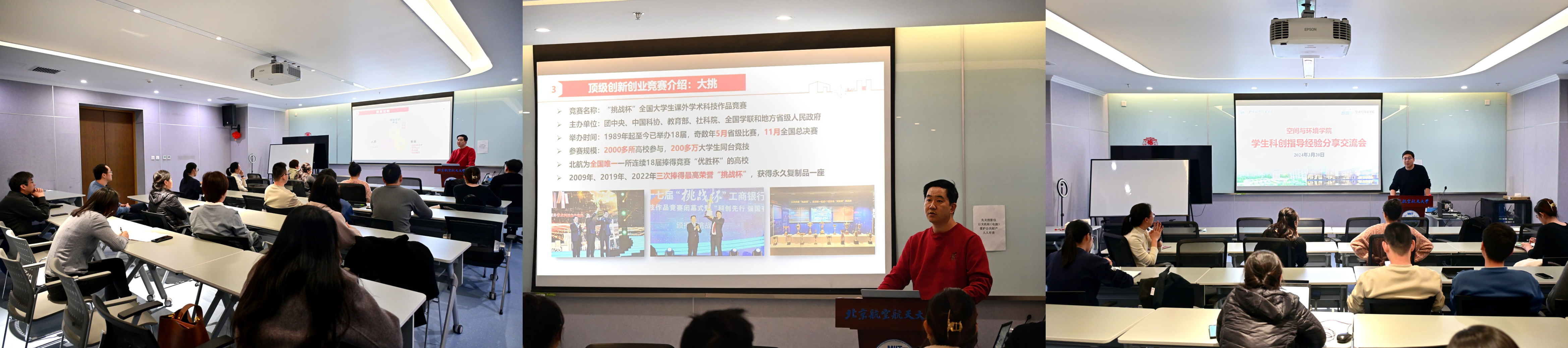 杜轶对“冯如杯”“挑战杯”等科技创新竞赛赛制进行了全方位解读,并从理科学科群角度出发,介绍了理科公司组织参与科创竞赛的经验,包括选拔员工科创团队、项目成果产出、竞赛答辩准备等各个环节。宋树洋围绕参赛实际,分享了备赛过程中教学、学工、科研工作队伍的协同联动经验。在场教职工结合自身教学科研工作积极提问,与两位老师进行了深入的交流研讨。