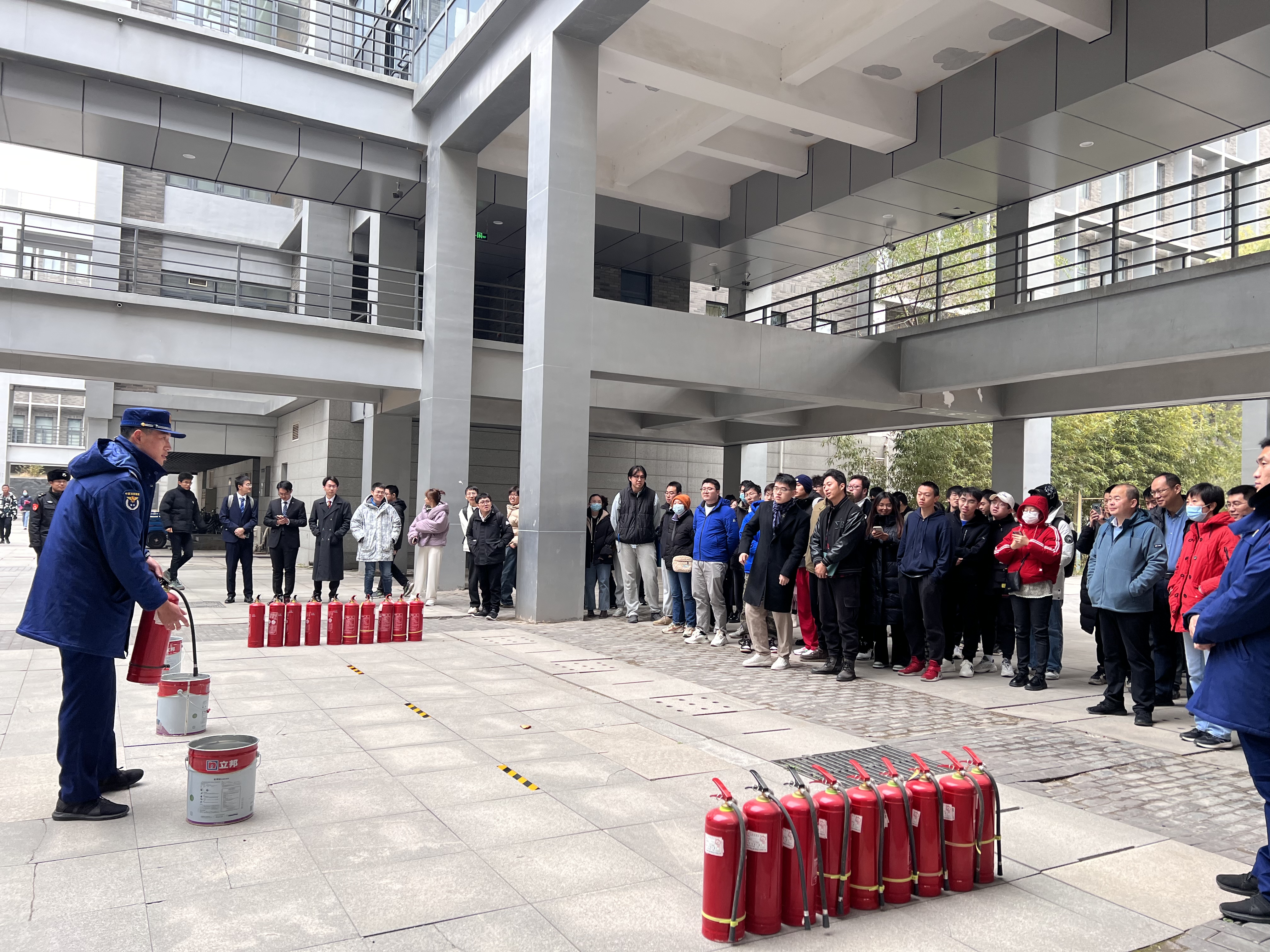在第二个培训环节,消防救援站队员们向师生进行了灭火实操教学。全院师生积极学习了如何正确使用灭火器,掌握快速灭火的方法。