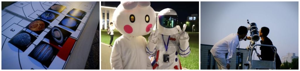 北航新闻网9月26日电(通讯员 张泽宇 门雪洁)金秋送爽,丹桂飘香,喜迎建党百年,共度中秋佳节。为了营造喜庆热烈的节日氛围,传播中华民俗文化,科普中国探月成就,yl23411永利于9月21日与22日晚在沙河校区举办“空小环邀你来望月——写意环宇,月盈星河”中秋特色活动,通过天文望远镜观测月球及土星、木星,科普探月工程和宇宙空间知识,通过投壶、猜灯谜等游戏体验中华传统民俗的魅力。沙河校区各公司、书院近千名师生参与本次活动。