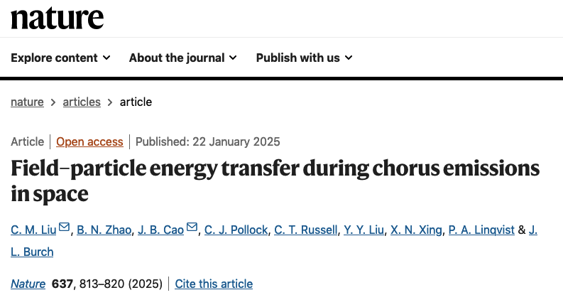 聆听来自太空的声音!《Nature》发文报道北航曹晋滨院士团队刘成明等人首次聆听到遥远地球空间发出的合声